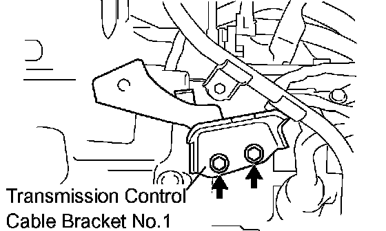 b. Remove the 2 bolts and transmission control cable bracket No.1.