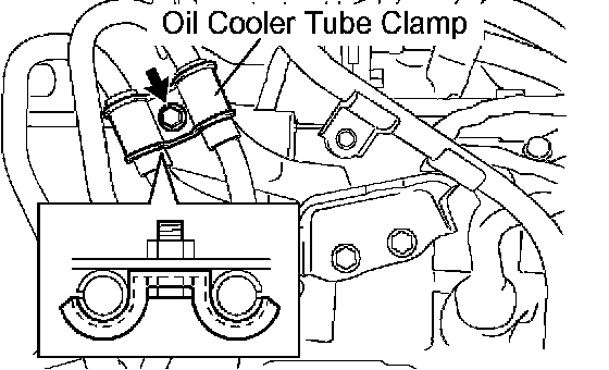 c. Install the oil cooler tube clamp and bolt.
