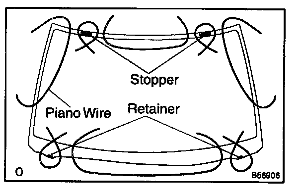 a. Install 2 new windshield glass retainers onto the glass as shown in the illustration.