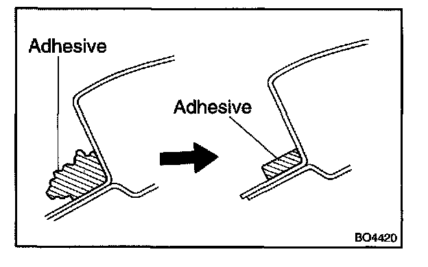 a. Install a new windshield moulding to the windshield glass before the adhesive has hardened.