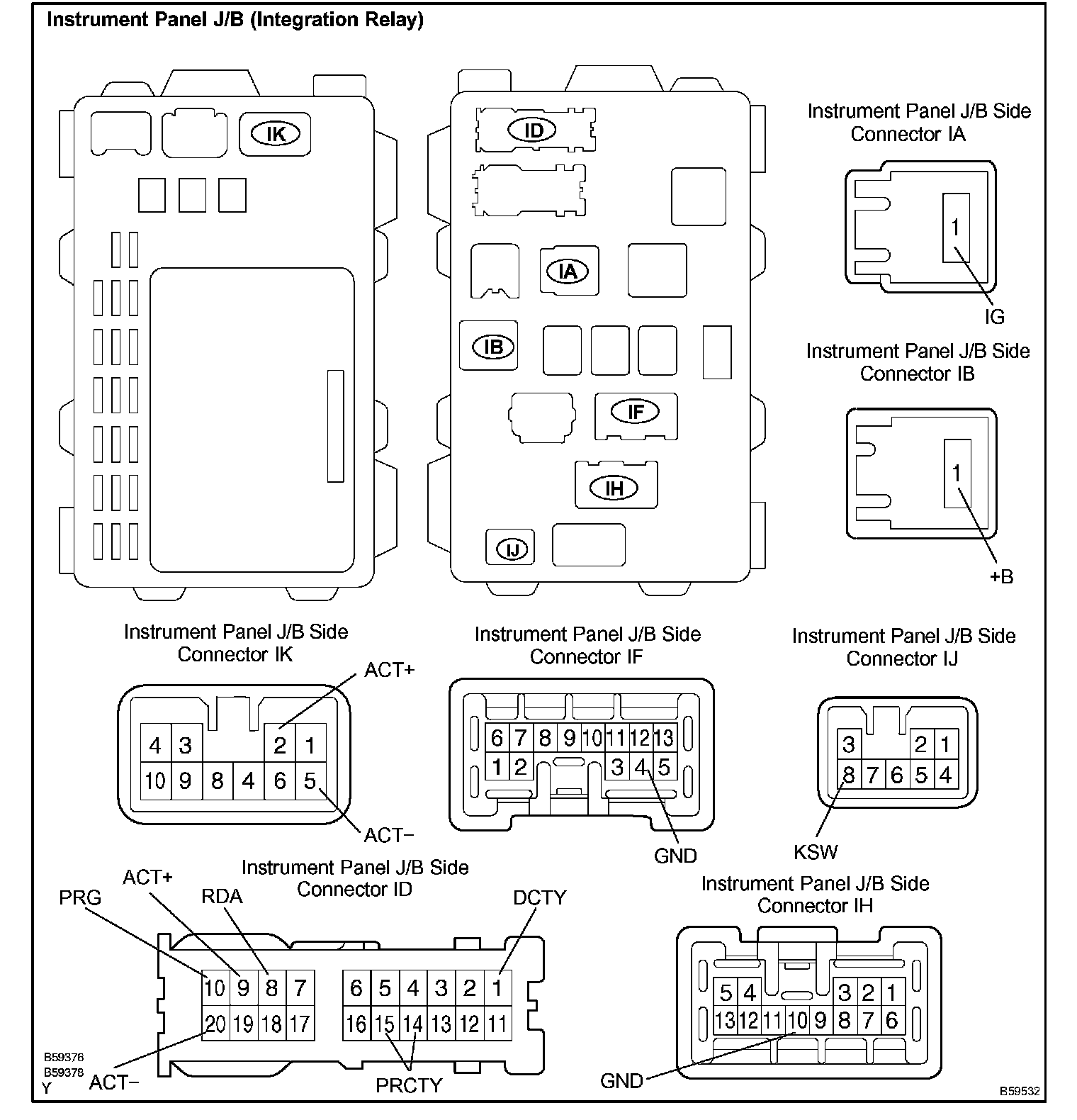 a. Disconnect the connectors IA, IB, ID, IF, IH and IJ of the instrument panel J/B.