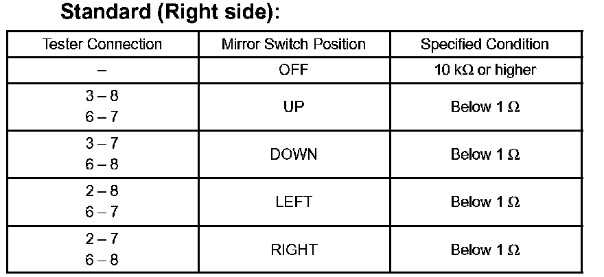 a. Check the mirror switch continuity.