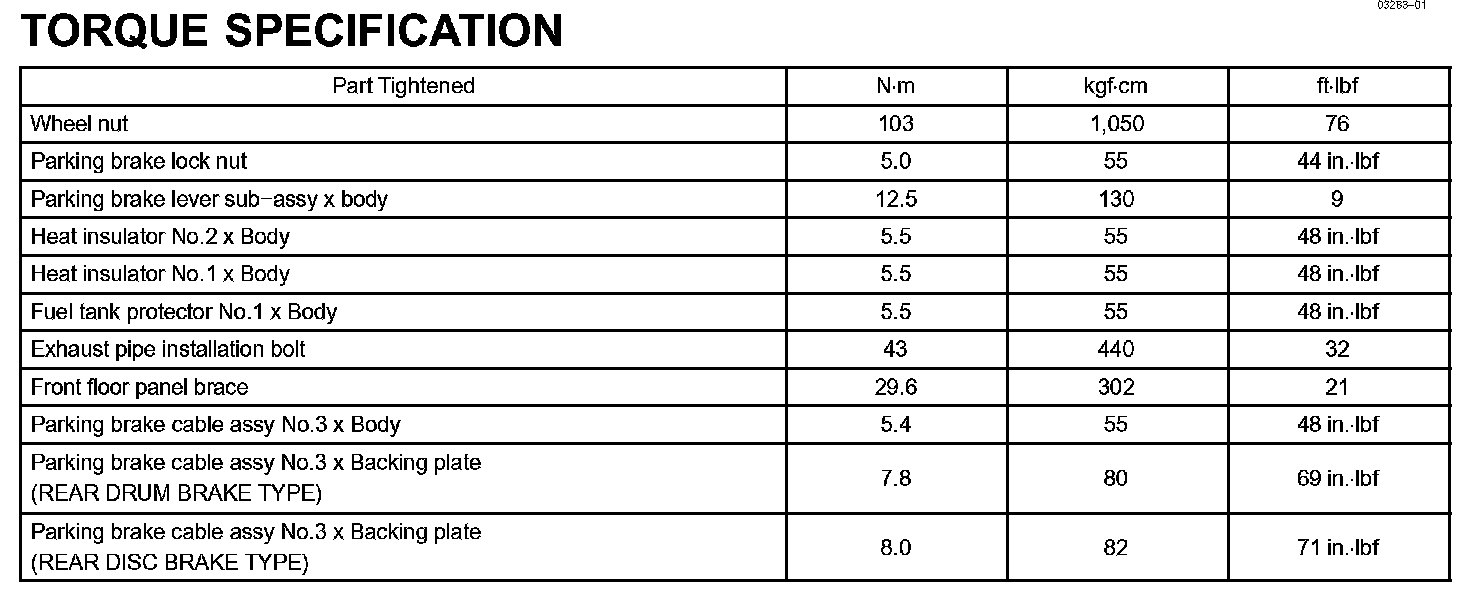 Parking Brake-Torque Specification: