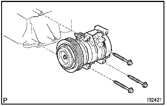 b. Remove the 3 bolts and the compressor and magnetic clutch.