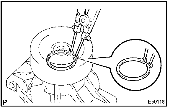 b. Using a snap ring expander, install a new snap ring with the chamfered side facing up.