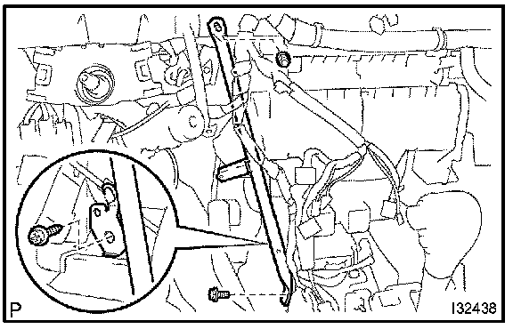 a. Remove the 2 nuts and instrument panel to cowl brace center.