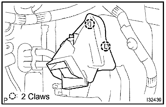 b. Release the 2 fitting claws, remove the air duct No. 2.