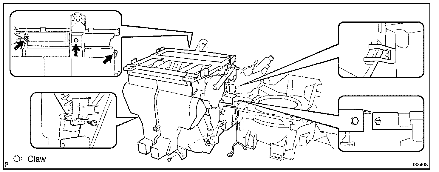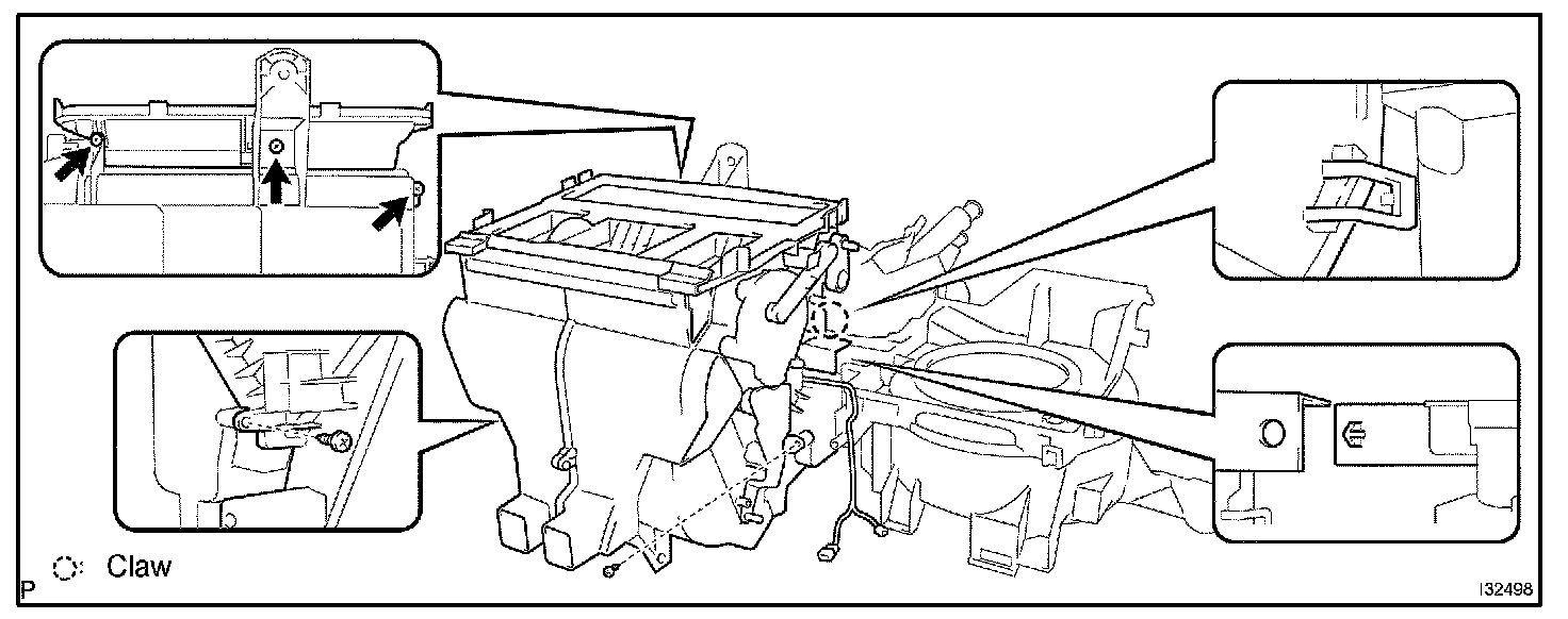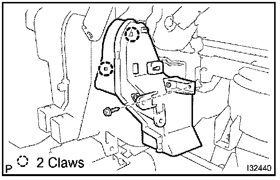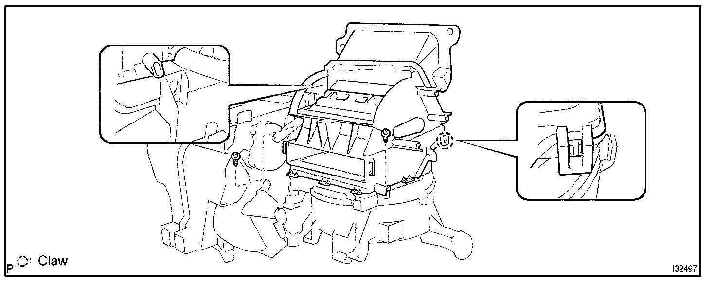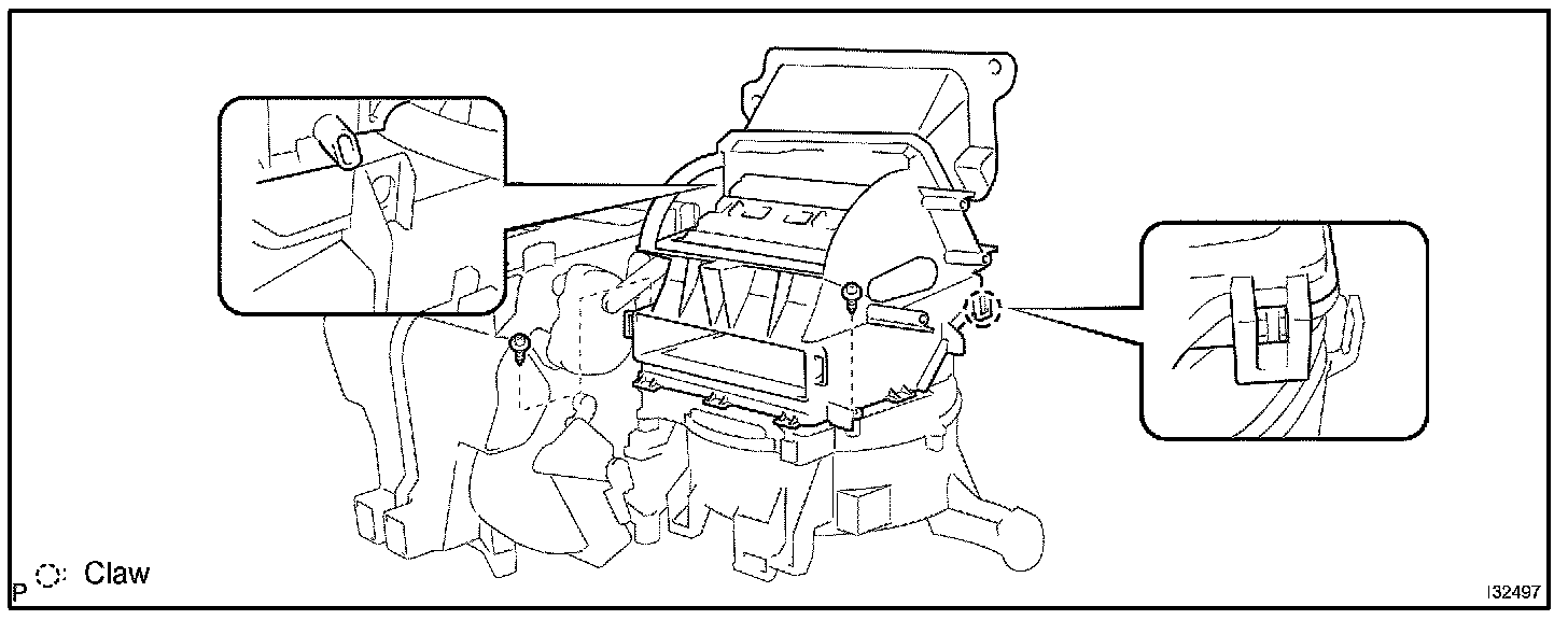 c. Install the heater case with the claw and 2 screws.
