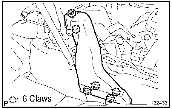 b. Release the 6 fitting claws, remove the air duct rear No.4.