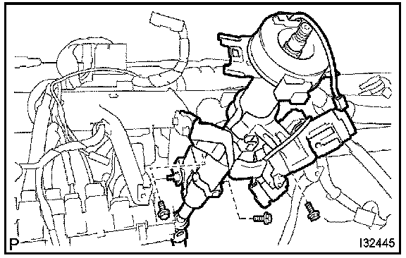b. Remove the 3 bolts, disconnect the steering column assembly.