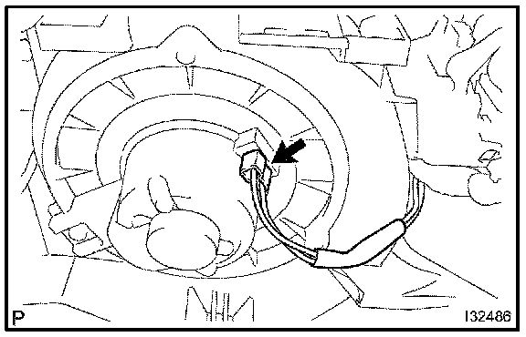 b. Disconnect the connector from the blower w/fan motor sub-assembly.