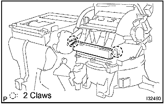 a. Remove the 2 clips and heater to register duct No. 2.