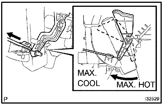 HINT: Operating the temperature control lever, check that it properly stops at both ends of MAX. COOL and MAX. HOT and no recoil is identified.