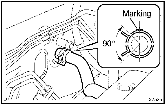 b. Install the suction hose sub-assembly and piping clamp.