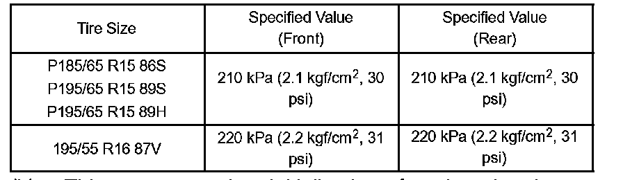 - The tire pressure is excessively higher than specified, or tire pressure suddenly drops due to bursting or other causes.