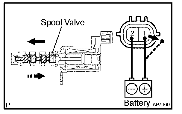 1. Apply battery voltage across the terminals, then check that the spool valve operates.