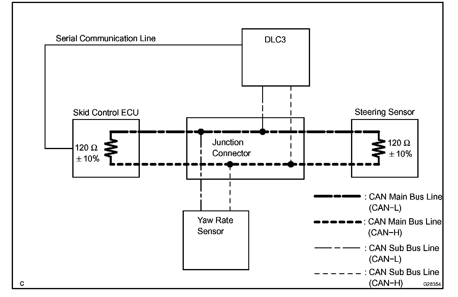 1. Sub bus line is a wire harness which diverges from the main bus line, which is the main bus of the CAN bus, to an ECU or sensor.