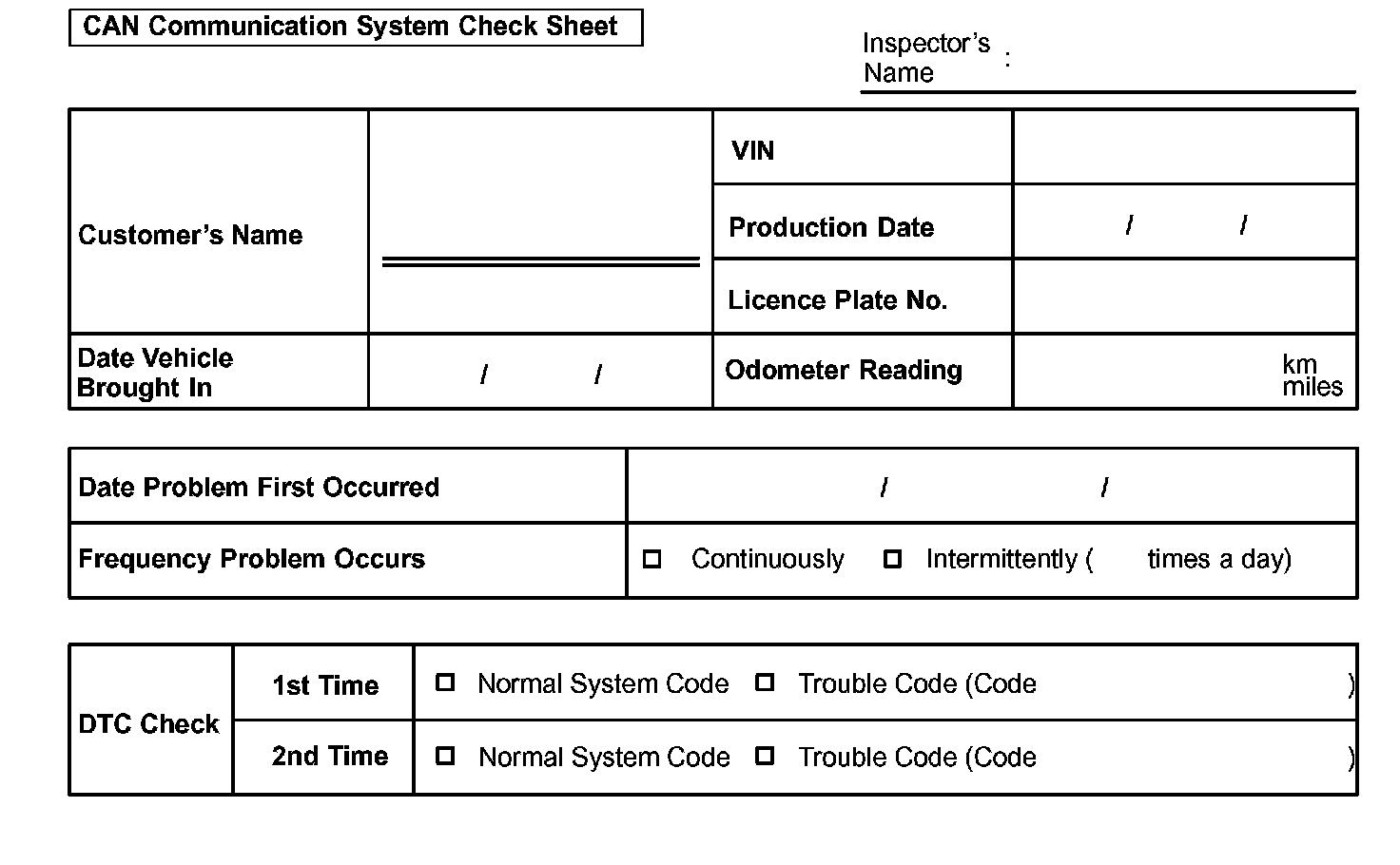 CAN Communication System Check Sheet:
