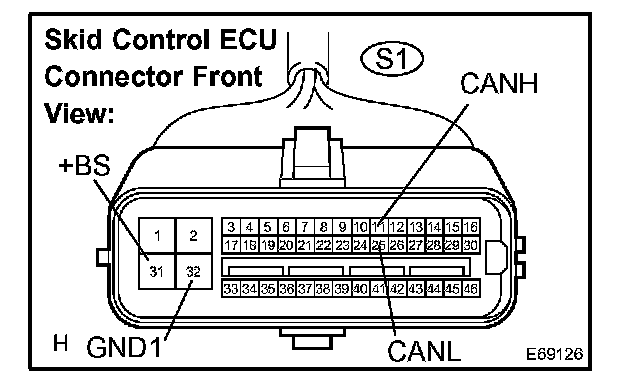 1. Disconnect the connector (S1) from the skid control ECU.