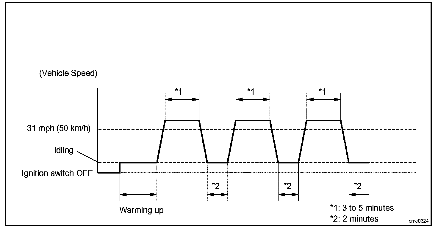 6 Drive the vehicle at 31 mph (50 km/h) or more for 3 to 5 minutes. *1