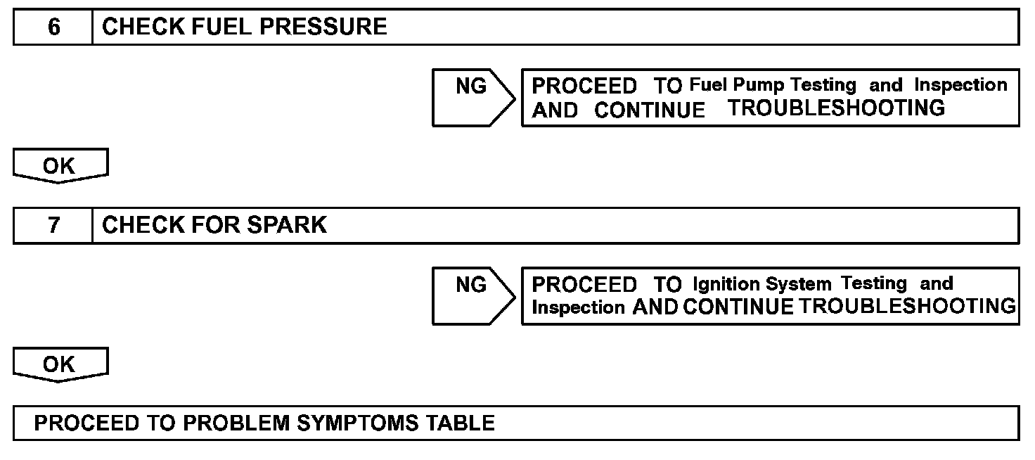 When a malfunction is not confirmed by the DTC check, troubleshooting should be carried out in all circuits considered to be possible causes of the problem. In many cases, by carrying out the basic engine check shown in the following flowchart, the location of the problem can be found quickly and efficiently. Therefore, using this check is essential when engine troubleshooting.