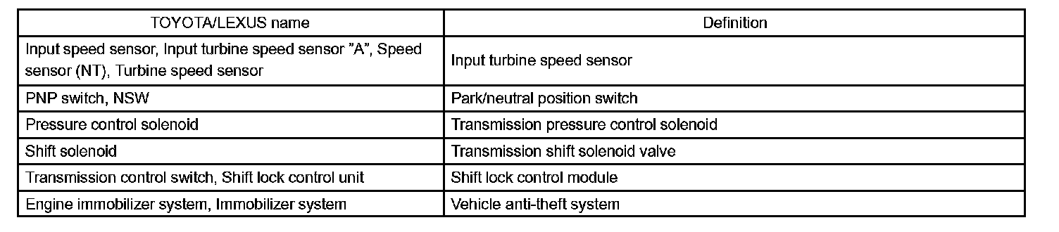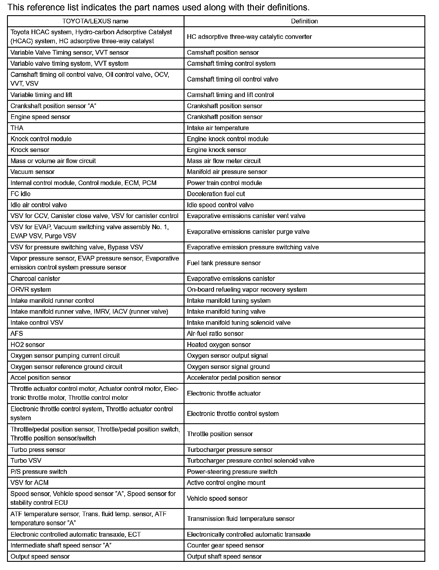 Part and System Name List