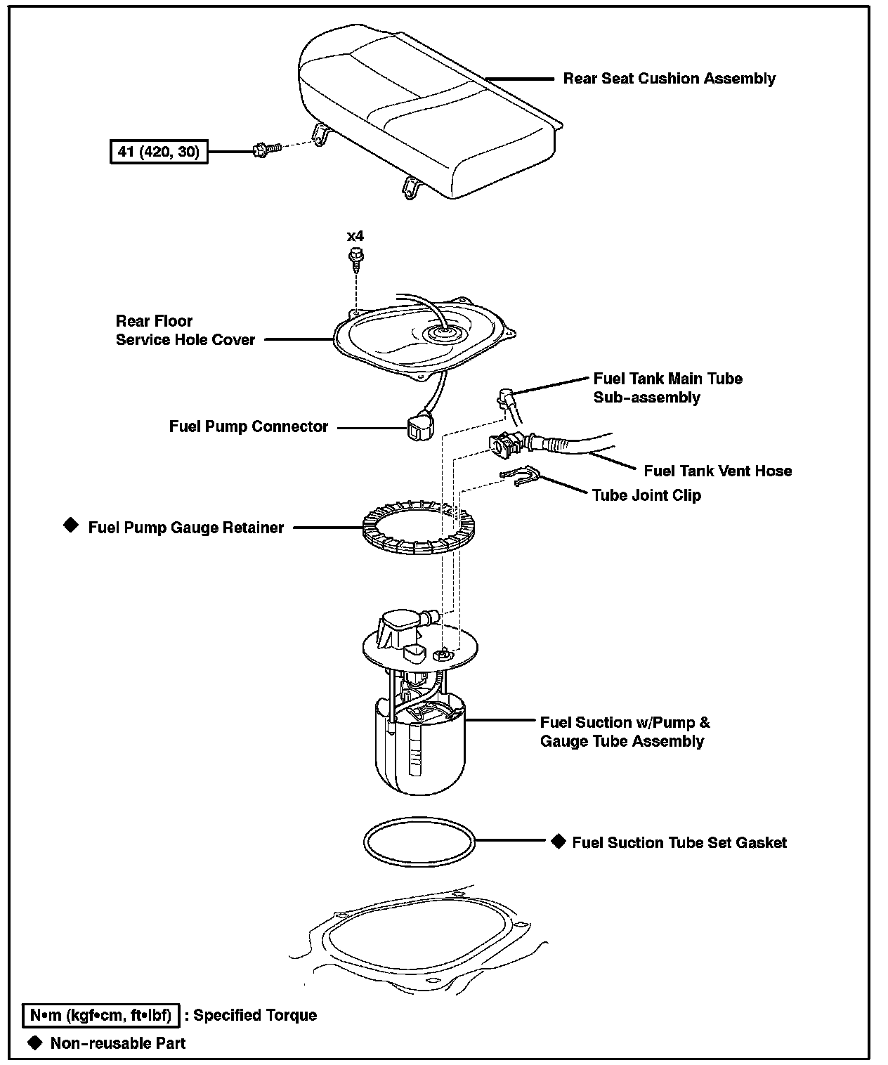 ^ 2005 model year Matrix: Fuel: Fuel Suction w/Pump & Gauge Tube Assy (FF): Removal & Installation and Disassembly & Reassembly