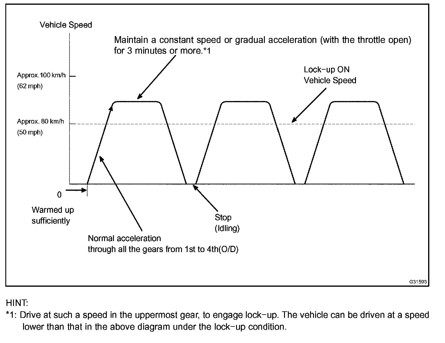 (The DTCs may not be detected due the actual driving conditions. And some codes may not be detected through this drive pattern).