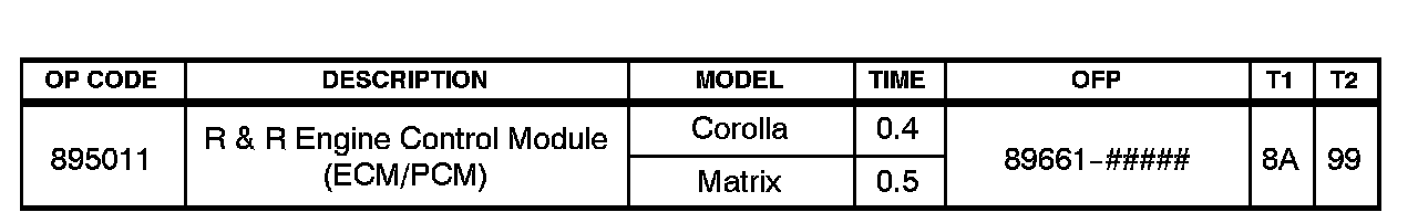 ^ 2005 model year Corolla or Matrix Repair Manual, Engine/Hybrid System - Engine Control - "1ZZ-FE 2ZZ- GE: ECM: Replacement"