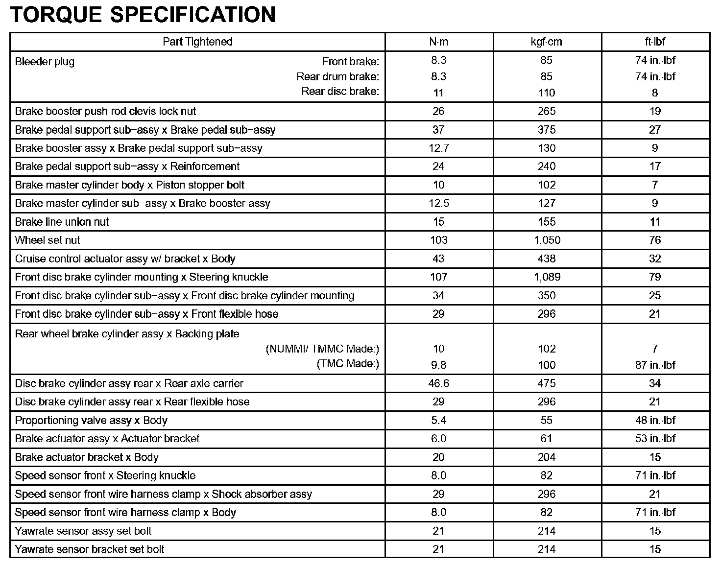 Brake-Torque Specification: