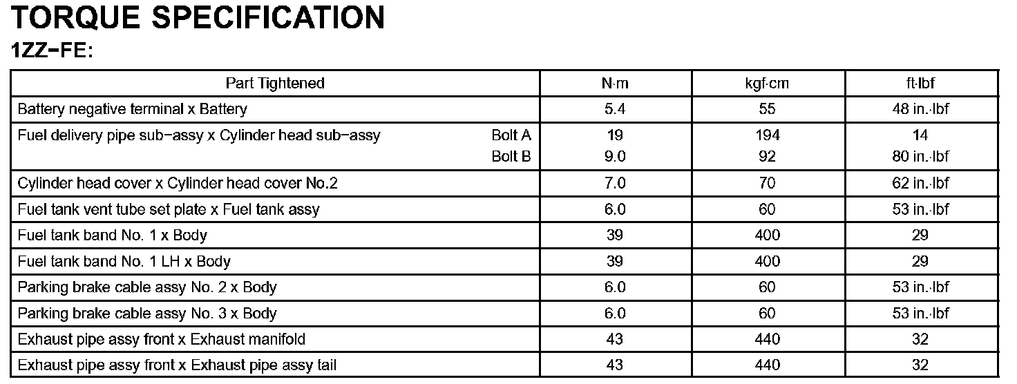 Fuel-Torque Specification: