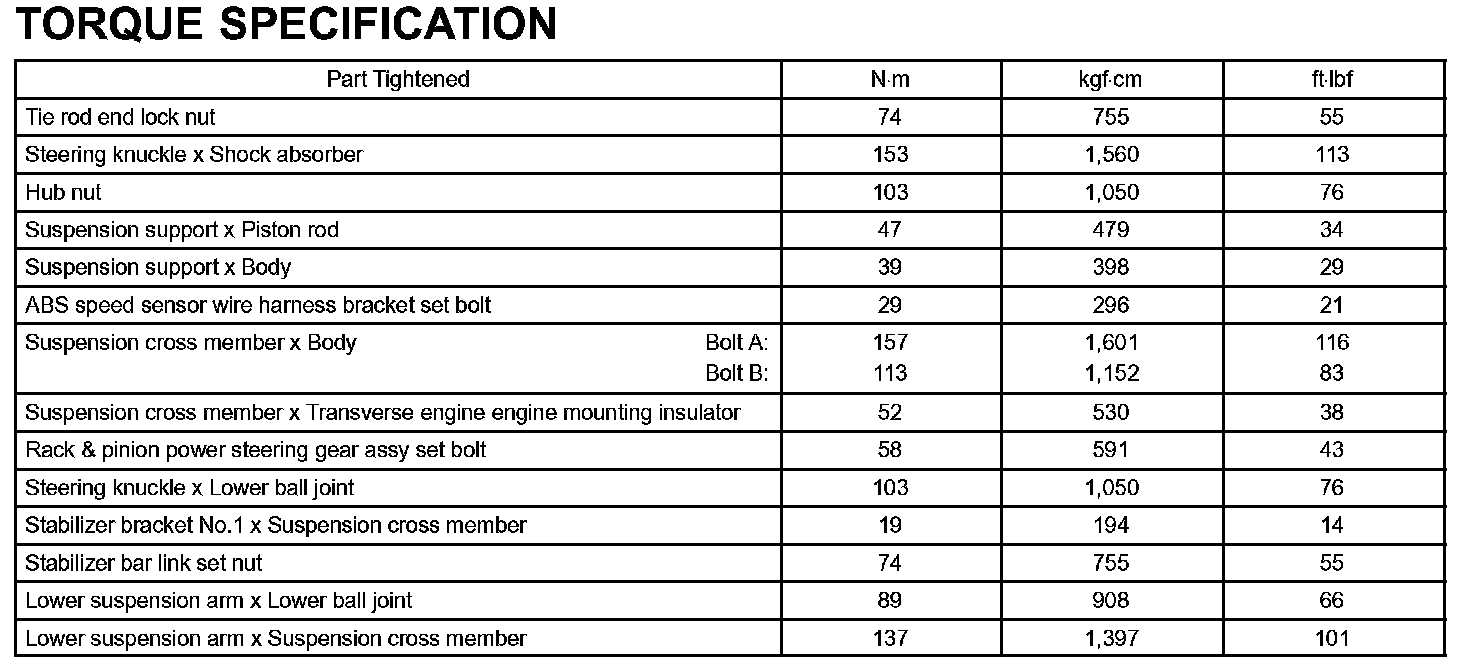 Front Suspension-Torque Specification: