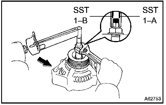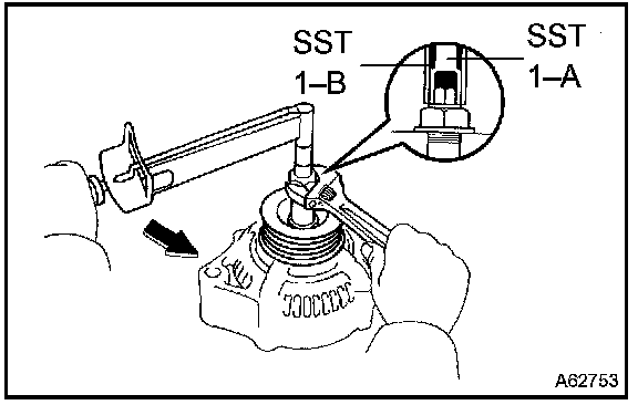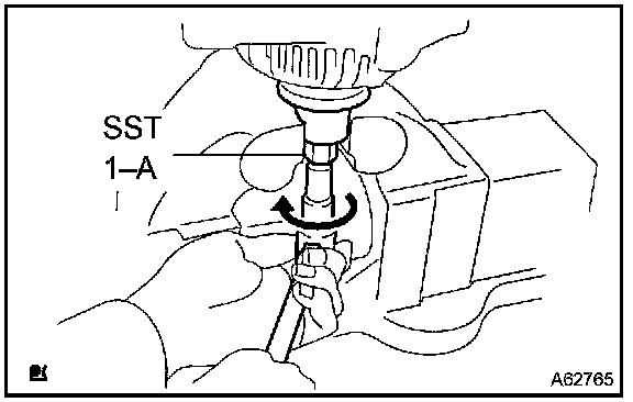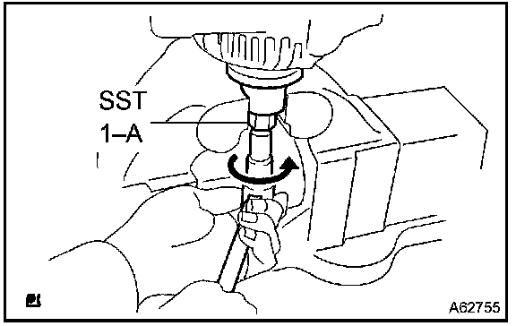 b. Hold SST 1-A with a torque wrench, then tighten SST 1-B clockwise to the specified torque.