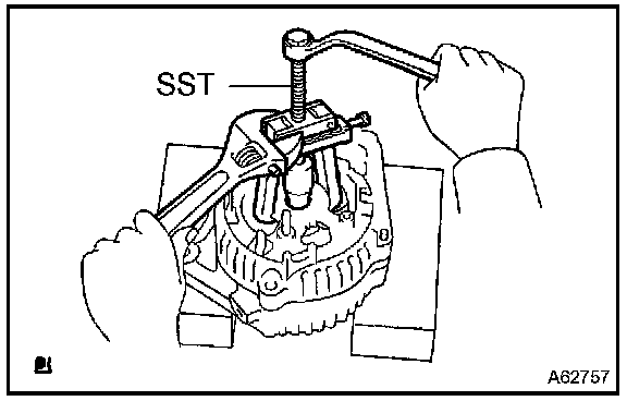 b. Using SST, remove the generator bearing cover (outside) and bearing.