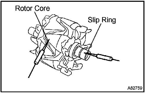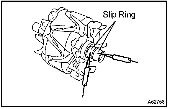 2. Using an ohmmeter, measure the resistance between the slip ring and rotor.