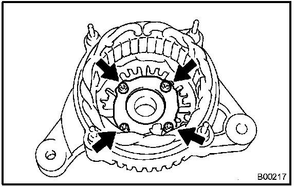 a. Remove the 4 screws, then remove the generator holder with rectifier.