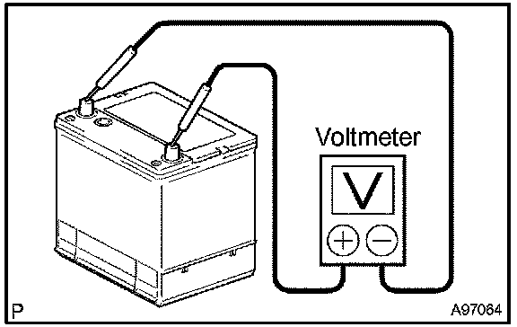c. Measure the battery voltage between the negative (-) and positive (+) terminals of the battery.