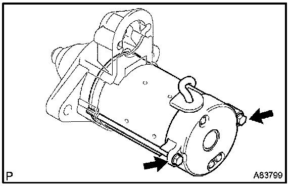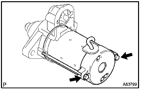 a. Remove the 2 through bolts, then pull out the starter yoke together with the starter commutator end frame.