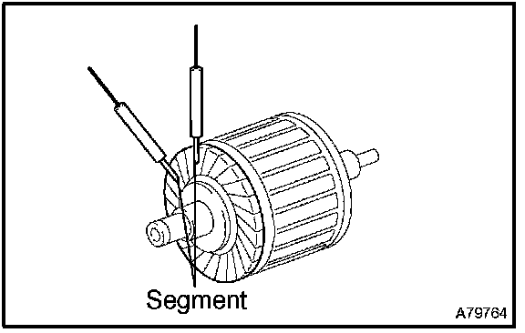 1. Using an ohmmeter, check that there is resistance between the segments of the commutator.