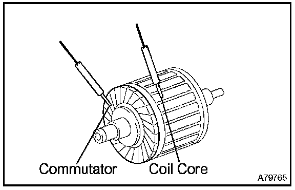 2. Using an ohmmeter, check that there is no resistance between the commutator and armature coil core.