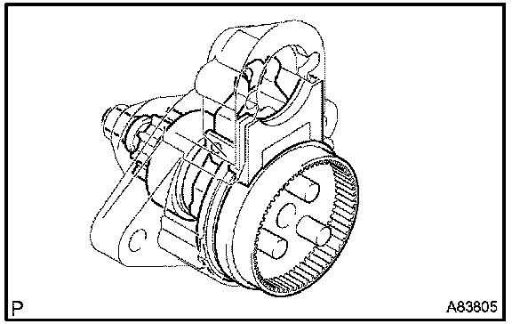 1. Check the gear teeth on the planetary gear, internal gear and starter clutch for wear or damage.