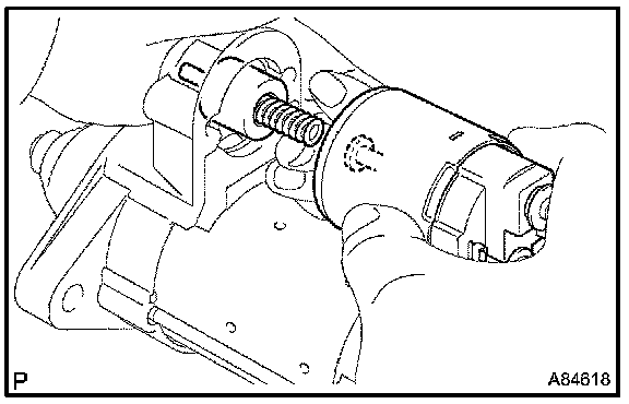 d. Remove the return spring and plunger from the starter drive housing.