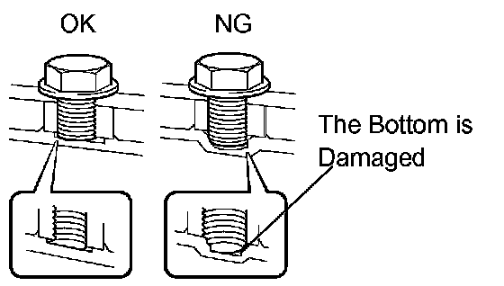 (1) When there is any damage on the end of the bolt for the torque converter clutch and on the bottom of the bolt hole, replace the bolt and the torque converter clutch.