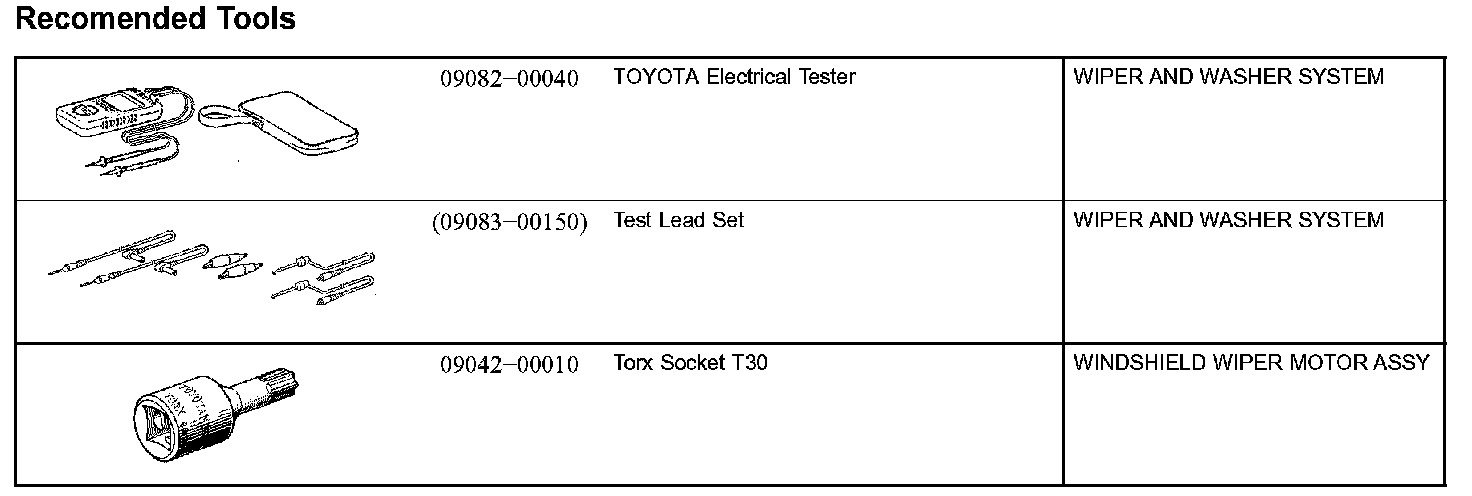 Wiper & Washer-Recommended Tools: