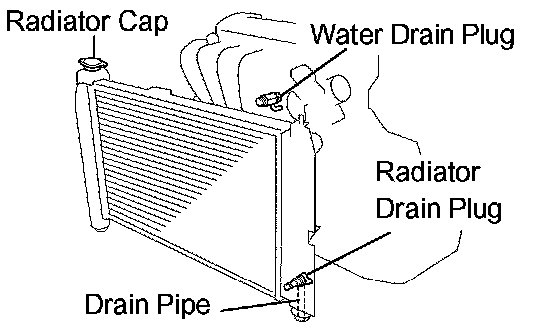 a. Loosen the radiator drain plug (lower side) and water drain plug, then drain the coolant.