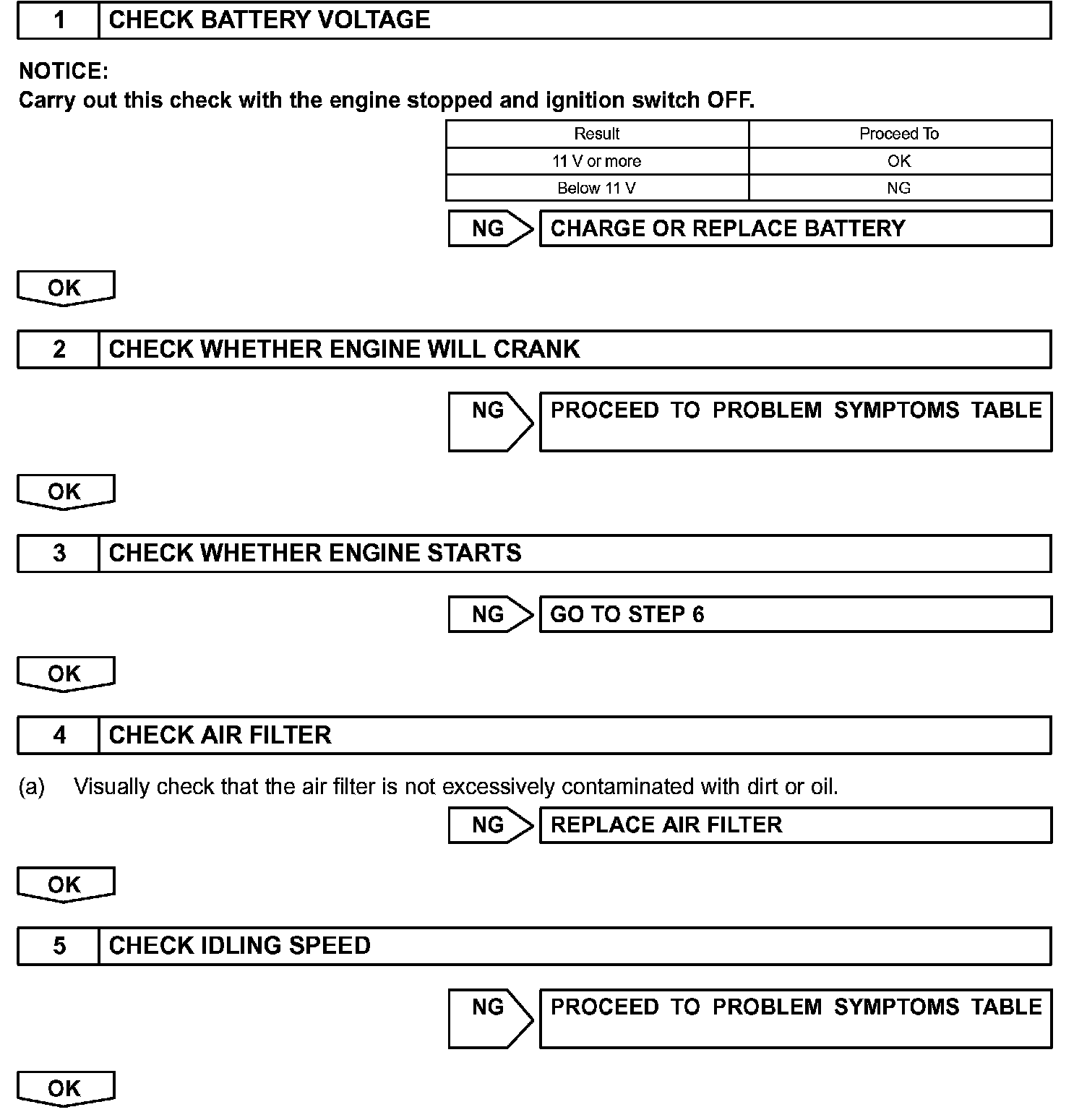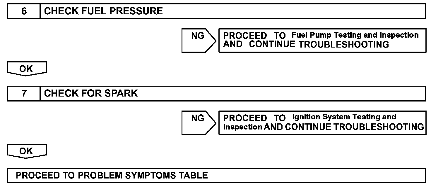 When a malfunction is not confirmed by the DTC check, troubleshooting should be carried out in all circuits considered to be possible causes of the problem. In many cases, by carrying out the basic engine check shown in the flowchart, the location of the problem can be found quickly and efficiently. Therefore, using this check is essential when engine troubleshooting.