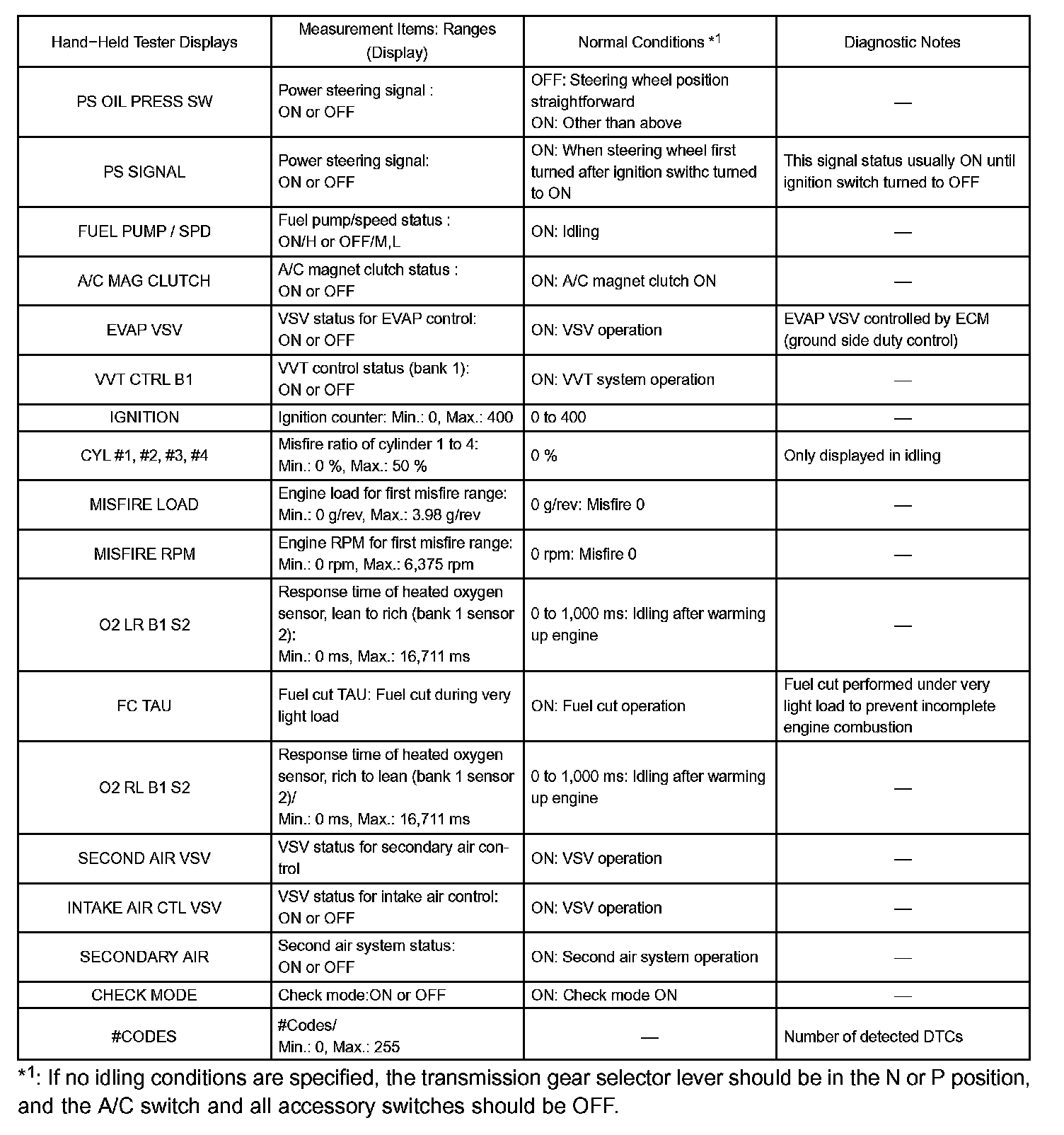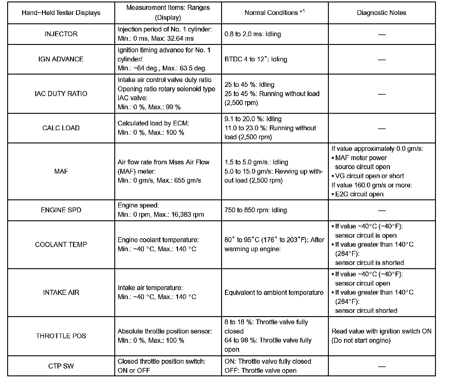 DATA LISTHINT: By reading the DATA LIST displayed on a hand-held tester or OBD II scan tool, you can check values, including those of the switches, sensors, and actuators, without removing any parts. Reading the DATA LIST as the first step of troubleshooting is one method of shortening diagnostic time.