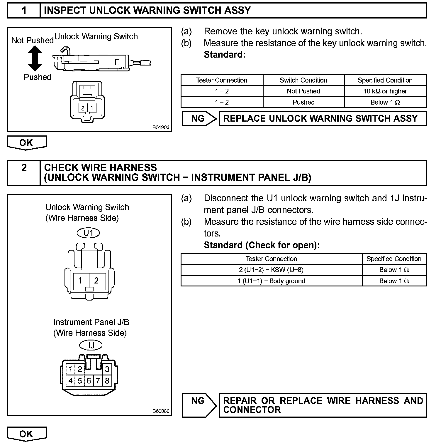 Key Confinement Prevention Function Does Not Work Properly (Unlock Warning Switch Circuit)