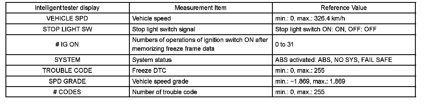 - Freeze frame data at the time the ABS operates: