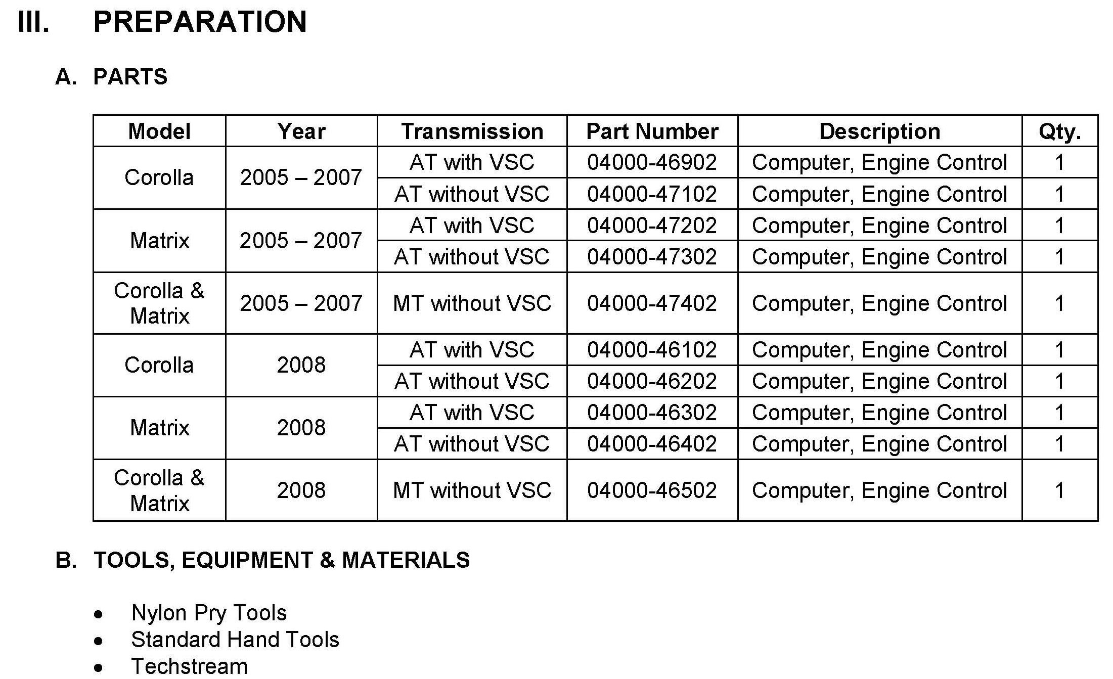 Recall - ECM Replacement For Stalling Condition